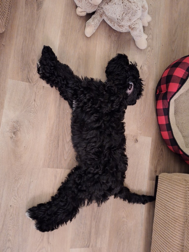 Lounging after a walk in the woods. My mom realized that outdoor photos are tricky due to my long training leash and the fact I keep moving!